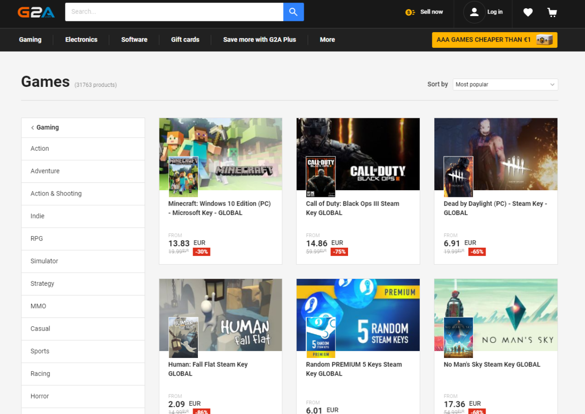 This is among the most popular websites to buy games from. It’s not cheaper than cdkeybay as g2a offers only products you can buy on their website, and it won’t list the best offers available over the internet. Still, this platform is good because it often has cheap sales at very low prices. Other selling platforms find it very hard to compete with them because their discounts are incredible. Many popular games can be found on premium here, and that’s why everyone loves g2a.com.