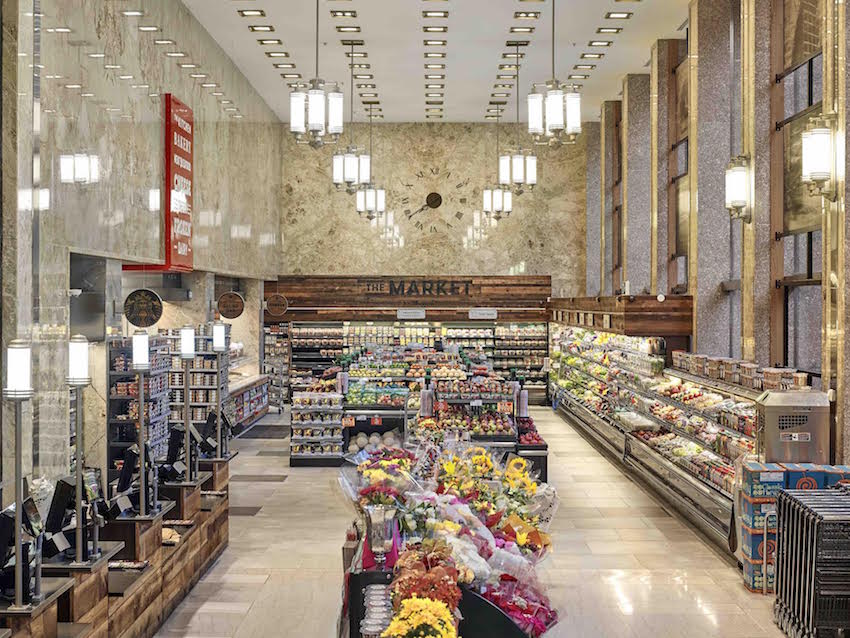 Toronto-based grocery retailer Longo’s has opened an impressive 8,500 square foot ‘Market by Longo’s’ store at Imperial Plaza on St. Clair Avenue, between Yonge Street and Avenue Road. The beautiful store features 24-foot ceilings and is located at the base of an iconic former office building that was recently repurposed for upscale condominium residences.