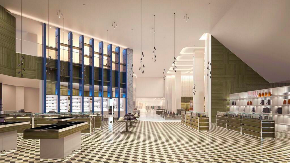 Accessories hall, featuring soaring ceilings. Rendering: Janson Goldstein via Holt Renfrew