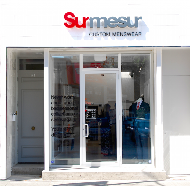 Founded by brothers Vincent and Frank Thériault in 2010, Surmesur manufactures and retails men’s made-to-measure clothing which includes custom suits, shirts, blazers, trousers and other garments. It combines body-scanning and manufacturing technologies with traditional methods, boasting a catalog of over 8000 fabrics with a wide assortment of collars, buttons, and sleeves. Surmesur endeavours to keep its costs down to keep prices reasonable and as a result, custom shirts are priced from $65 and suits start at $450. After measurements and fabric/button/design choices are made, suits are ready in four-to-six weeks. To keep costs down, the company chooses to operate free-standing locations as ‘destinations’ rather than locating in malls, partly due to the often high rents within Canadian shopping centres. Cost savings are passed on to customers and as a result, Surmesur’s prices are usually lower than competing made-to-measure menswear retailers.