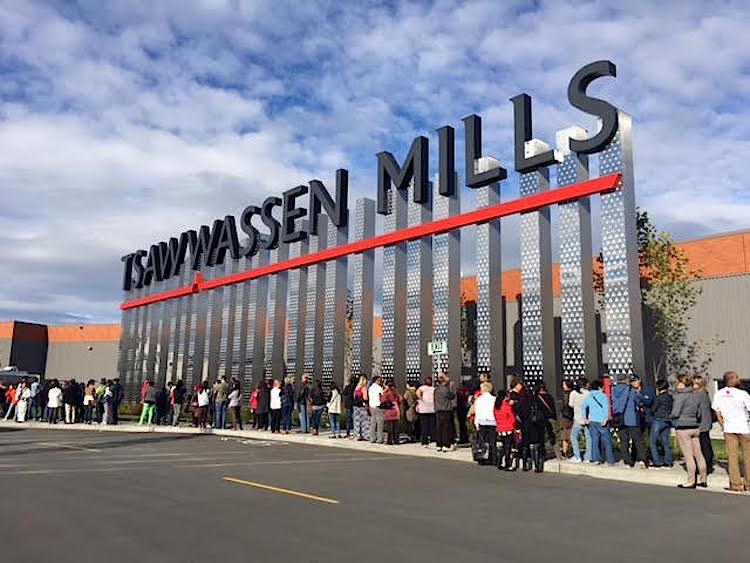 The unique enclosed centre features five distinct shopping neighbourhoods – Fashion, Outdoor Life, Coast Salish, City, and Nature – each featuring its own custom artwork and design elements. Construction began on the massive Tsawwassen Mills in January of 2014, which is located at Highway 17 and 52nd Street in South Delta — about 30 minutes north of the Washington State border and less than 5 km from the Tsawwassen Ferry Terminal.