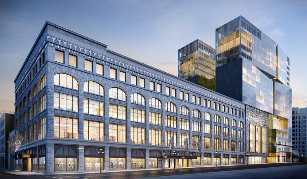 A newly merged ‘Holt Renfrew Ogilvy’ store is expected to be completed by the year 2020 at 1307 Ste-Catherine Street West — and when finished, the existing 83,000 square foot Holt Renfrew store at 1300 Sherbrooke St. West will close. The expanded 250,000 square foot Holt Renfrew Ogilvy on Ste-Catherine Street, with a facade restoration that will be designed by Gensler and with its interior designed by Jeffrey Hutchison & Associates and with support from Lemay, will become the largest in the Holt Renfrew chain, and will feature an impressive roster of luxury branded boutiques throughout.