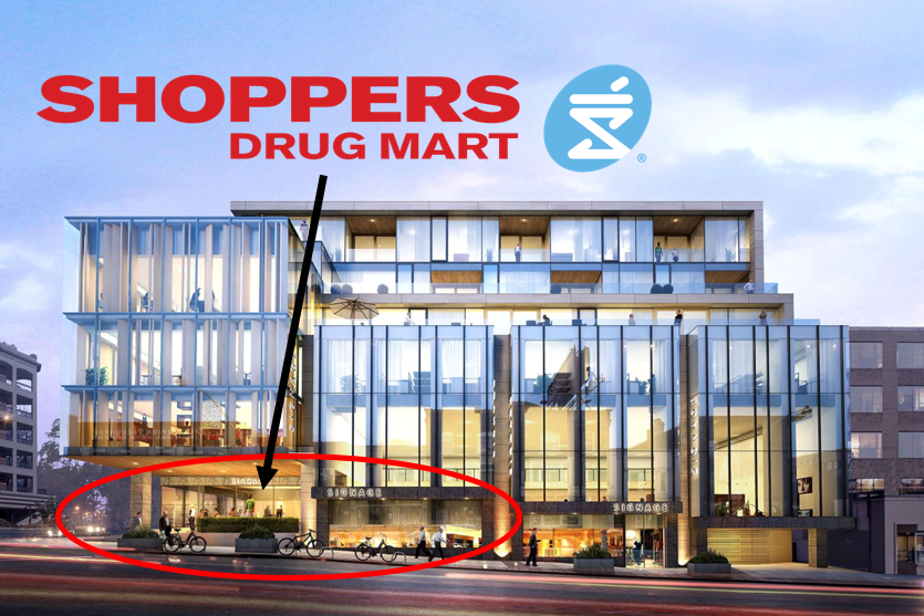 The Rosedale Shoppers Drug Mart replaces a recently-shuttered location at 817 Yonge Street, which is a few steps south of the intersection where Yonge Street intersects with Church Street (to the west) and Davenport Road (east of Yonge). That 9,000 square foot retail space is currently being offered for lease, in an area that is seeing explosive growth in the forms of several thousand new condominium units to be finished over the next few years.