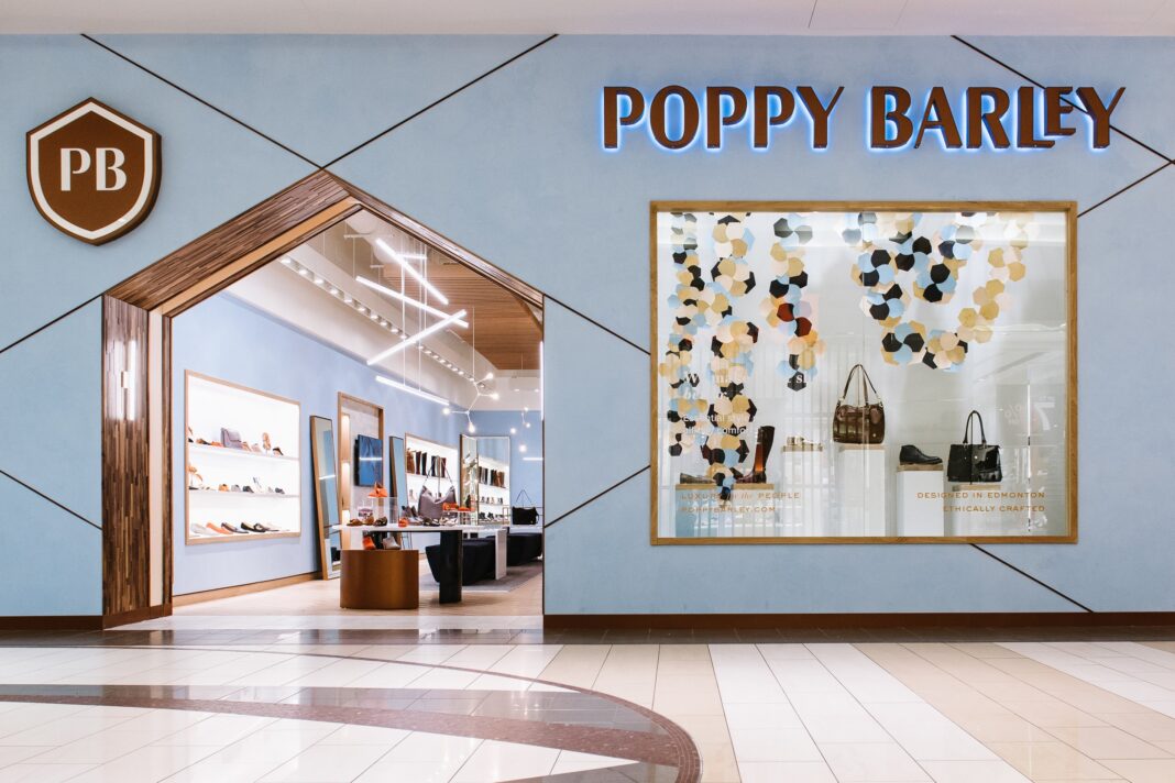 The new Poppy Barley store in CF Market Mall includes in-stock women’s sizes, men’s footwear, and leather accessories, as well as interactive brand elements including an interactive map, videos of the shoes being made, factory photos from Mexico and Brazil, and a shoe art display.
