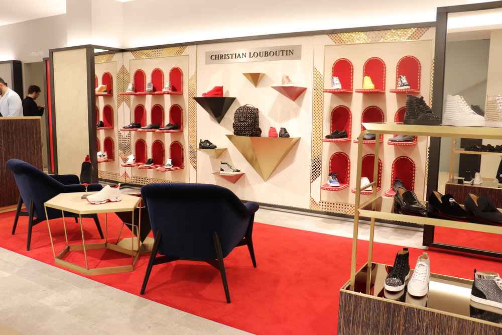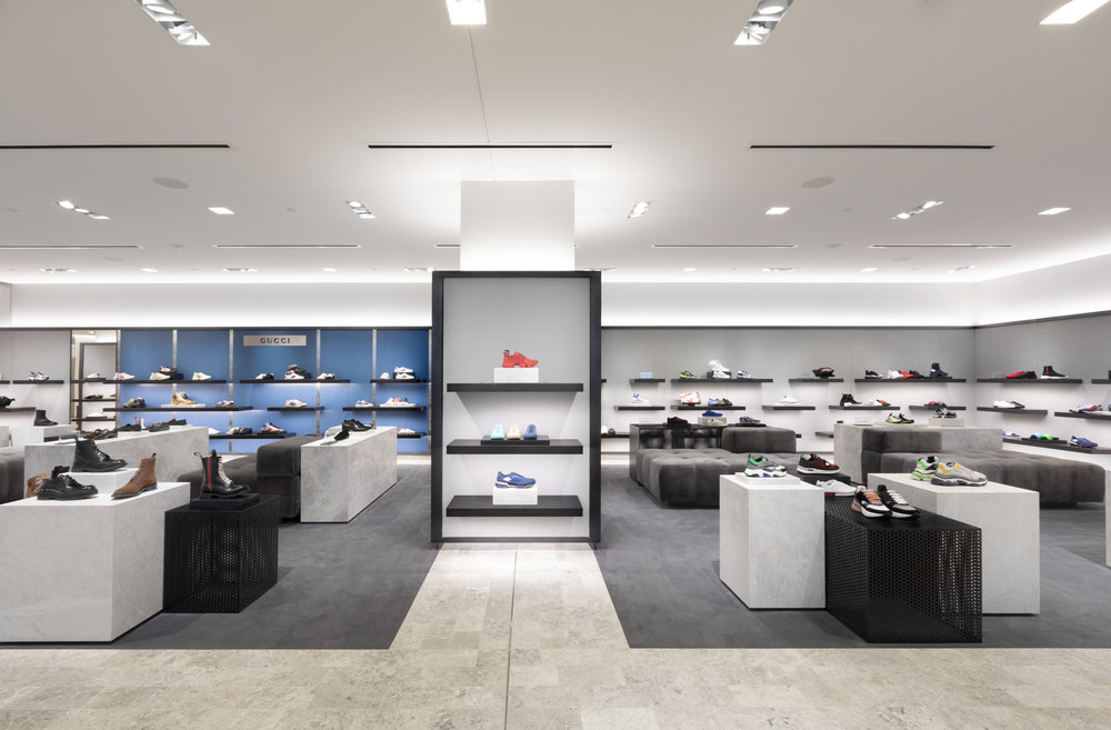 The large men’s footwear salon on the same level includes many of the world’s leading luxury brands, as well as a Christian Louboutin concession and a dedicated Gucci area, both carrying expansive offerings.