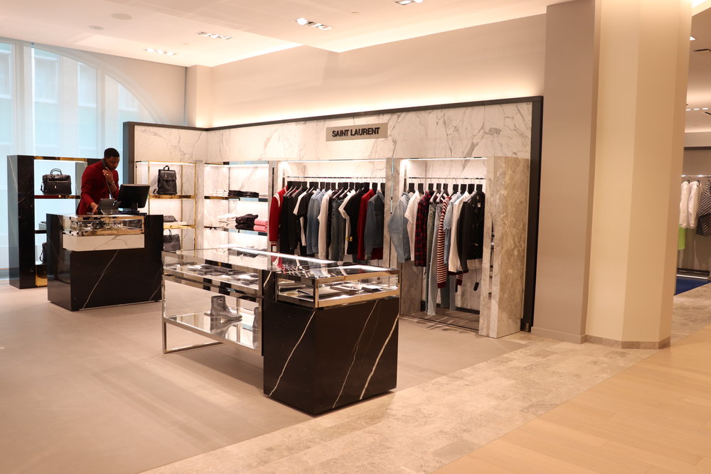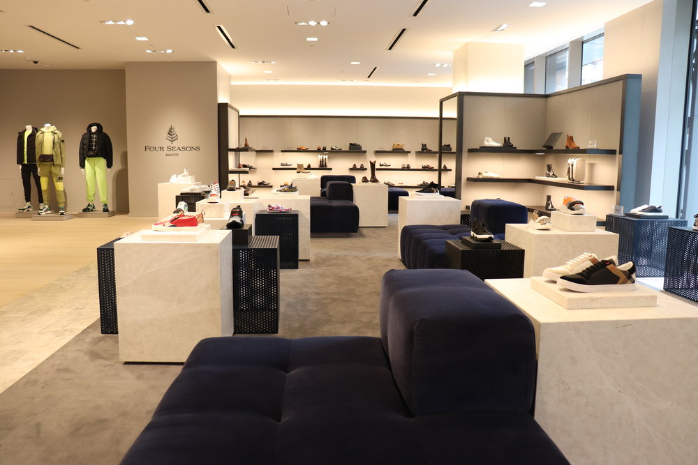 (Above: Men’s boutique areas for Brioni, Balenciaga and Gucci. Photos: Maxime Frechette)
