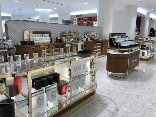 A collection of fragrance shops include brands such as Bulgari, Creed, Guerlain, Hermés and Jo Malone, with exclusive to Holt Renfrew Ogilvy brands that include Byredo, Chopard, and Bastide. The adjacent Holt Renfrew Ogilvy Scent Shop presents world renowned brands including Goutal Paris, Atkinson, and Serge Lutens.