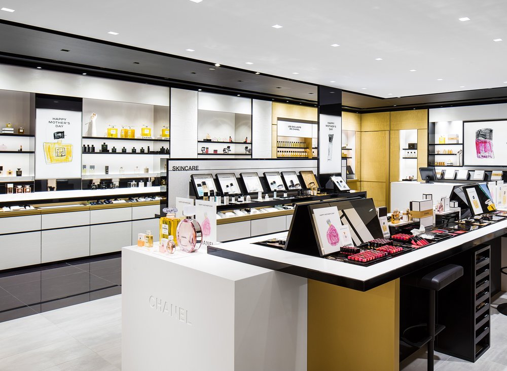 The overall Chanel fragrance and beauty boutique design is bright and attractive and since opening last week, has been consistently busy. The store’s interior features gold wall treatments similar to Chanel’s updated ready-to-wear boutiques.