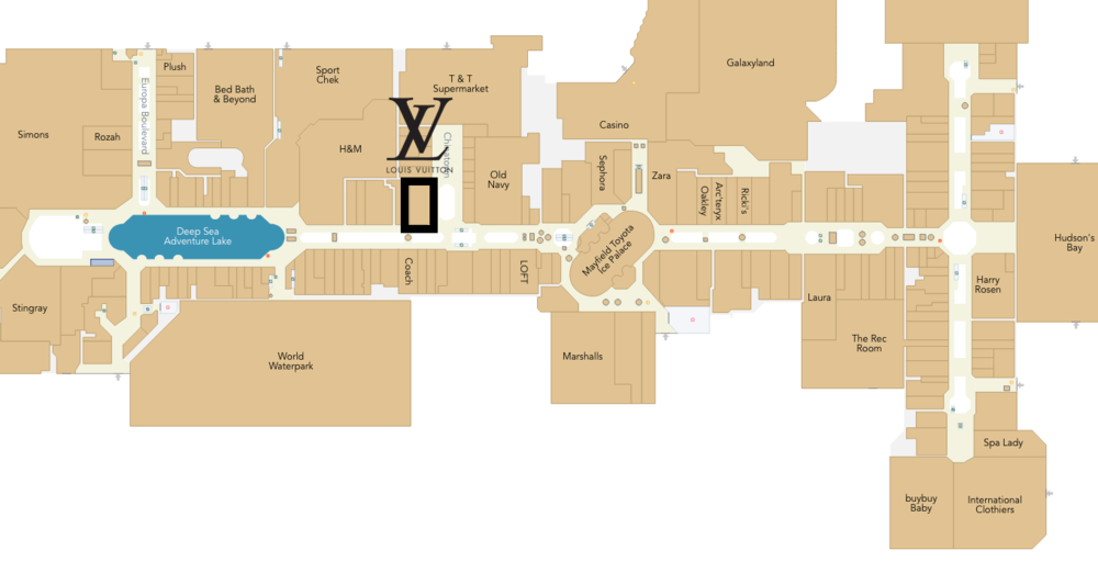 The West Edmonton Mall Louis Vuitton store occupies part of a 6,270 square foot retail space formerly tenanted by retailer Banana Republic. Edmonton-based fashion brand Workhall recently opened a storefront in the remainder of the former Banana Republic space next to Louis Vuitton, where it expected to remain for an extended period of time.