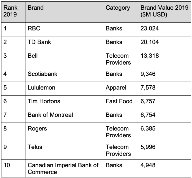 Here are the BrandZ Top 10 Most Valuable Canadian Brands 2019: