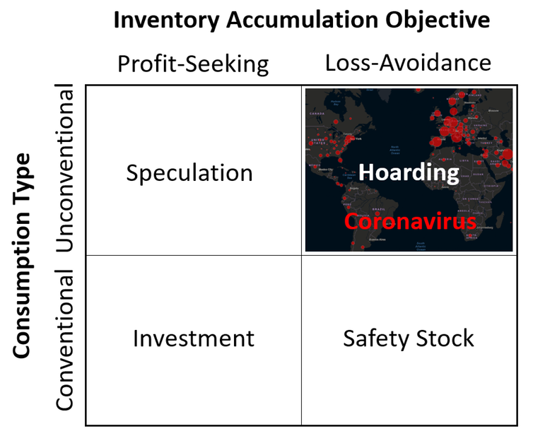 Consumer stockpiling in the face of the COVID-19 outbreak can be viewed as unconventional inventory accumulation, mainly meant to minimize a perceived threat of loss or fear of going without.