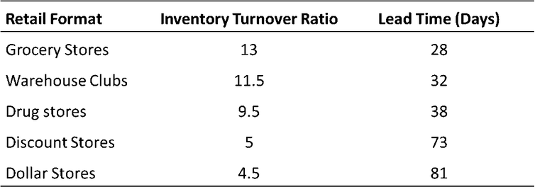 INVENTORY TURNOVER RATIO AND PROCESSING LEAD TIME BY TYPES OF RETAILER. WHARTON RESEARCH DATA, AUTHOR PROVIDED