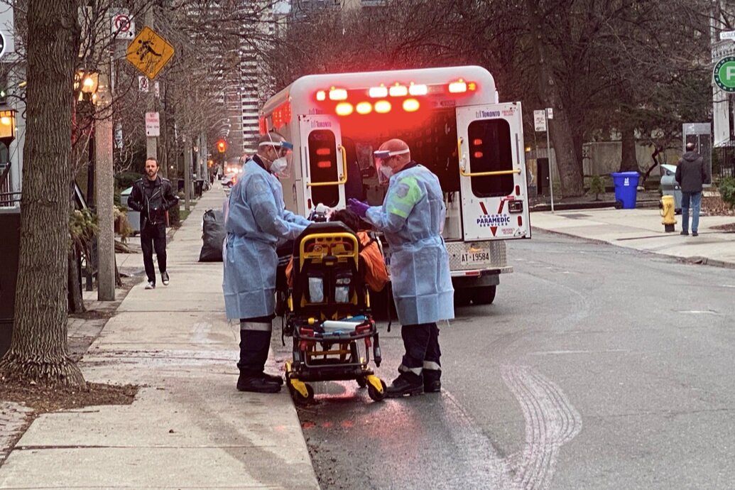 A man gasping for air while coughing falls to the ground on a street in downtown Toronto on Monday afternoon. An ambulance soon arrives and carries him away in a bag on a stretcher. Paramedics wear protective gear and suspect that the individual, of no fixed address, has contracted the coronavirus. Similar situations are expected to play out in greater frequency across Canada as the COVID-19 pandemic takes hold and confirmed infection cases escalate.