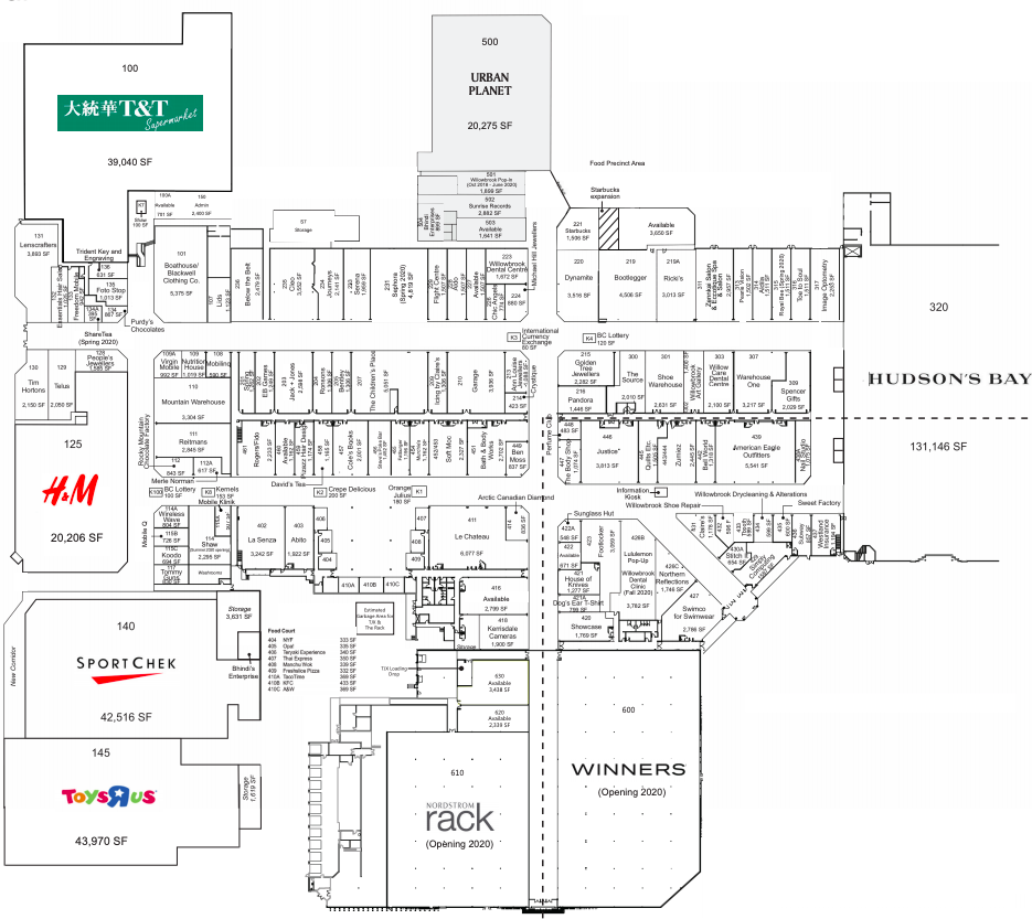 The Willowbrook Shopping Centre in the Vancouver suburb of Langley will be adding three new junior anchors to the mall property. Those include a Winners store this spring, Nordstrom Rack in the fall, and in the fall of 2021 a T&T Supermarket, known for its vast assortment of Asian food goods, will open as part of an expansion.