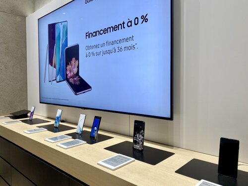 SAMSUNG TABLET AND PHONE DISPLAY IN NEW STORE. PHOTO: MAXIME FRECHETTE